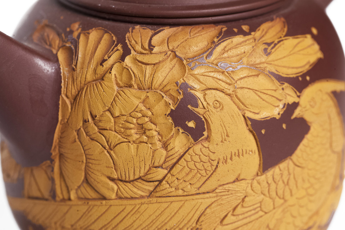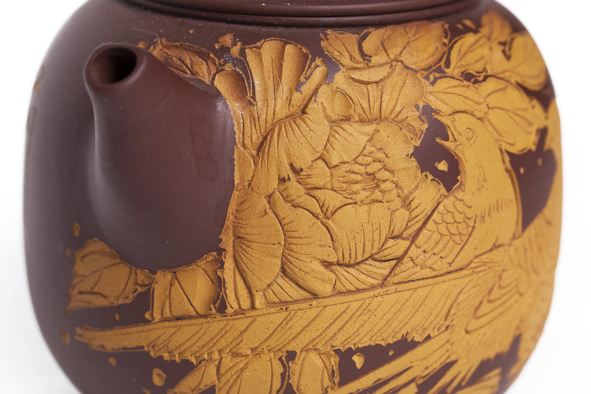 Чайник из исинской глины, сделанный с применением техники росписи глиной (фактурной росписи). Нетипичная работа.